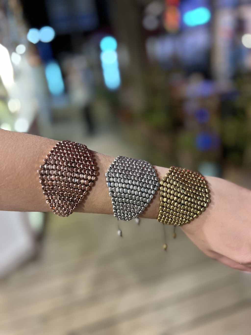 Brazaletes de India, ajustables, en tonos plateado, dorado y bronce